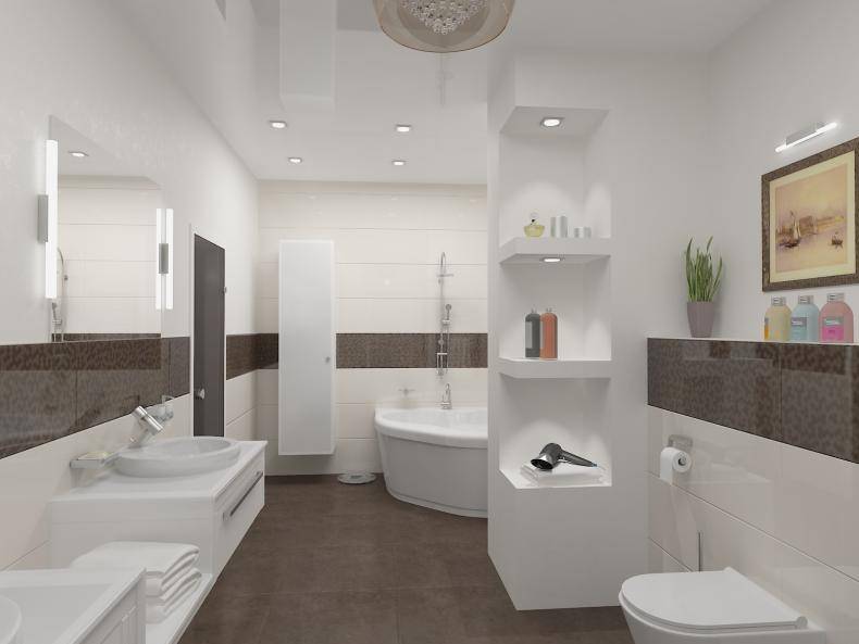 Изделия прямоугольной формы прекрасно подойдут для корректировки длинной ванной комнаты.