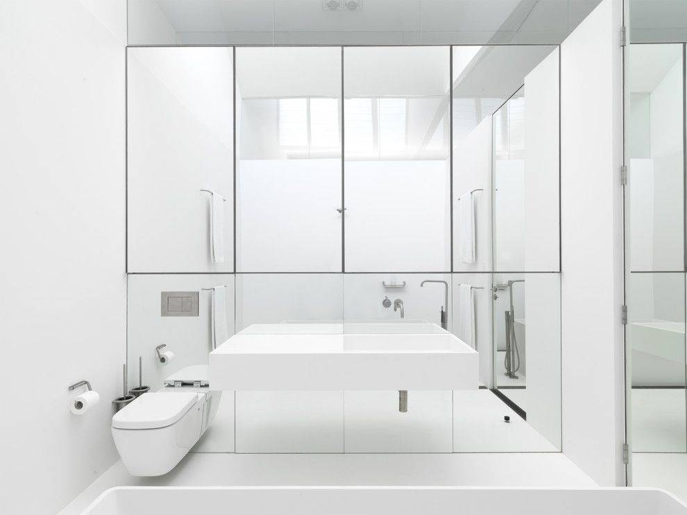 Модное дизайнерское решение закрывать зеркальным полотном полностью стену. Смотрится такой вариант довольно эффектно, как на фото зеркала в ванной комнате.