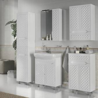 - пластик идеален для ванной комнаты или других помещений с повышенной влажностью, имеет невысокую стоимость и может по-разному декорироваться, причем обычно покупаются такие шкафы белого цвета;